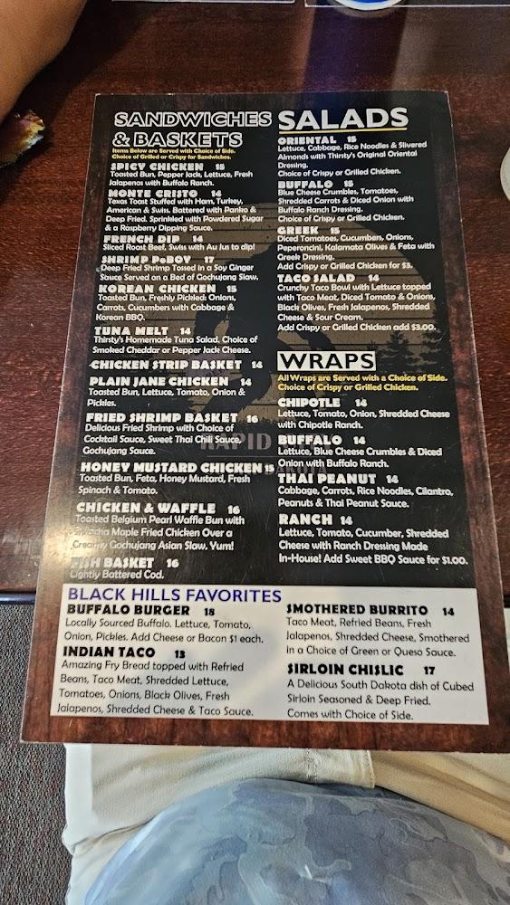 Welcome to Thirsty's, your go-to American restaurant and grill located in the heart of Rapid City. With a casual and vibrant ambiance, we offer a menu featuring local specialties alongside an extensive selection of craft beers and expertly crafted cocktails. Enjoy lunch or dinner in our comfortable seating or on our inviting terrace. Whether dining solo or with friends, our fast service ensures you’ll be well taken care of. We pride ourselves on accessibility and are equipped for all guests. Join us for a relaxed meal, and don't miss our happy hour specials on food and drinks!
